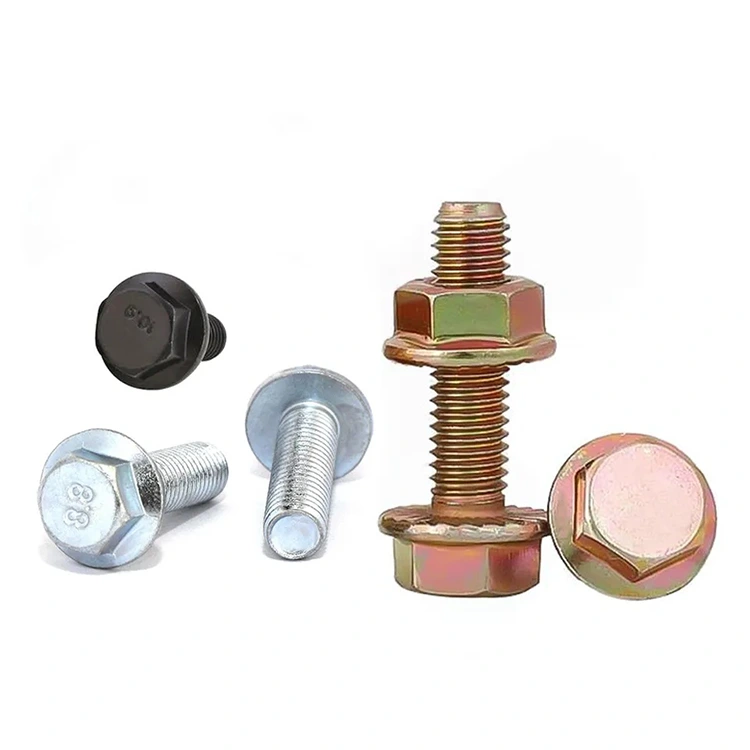 தரமற்ற கார்பன் ஸ்டீல் ப்ளூ ஒயிட் துத்தநாகம் பூசப்பட்ட பிளாட் ஹெட் ஹெக்ஸ் நெக் கேரேஜ் போல்ட்நீங்கள் தள்ளுபடி மற்றும் தரமான Flanged Hex Head Bolt வாங்க விரும்புகிறீர்களா? உலகெங்கிலும் உள்ள எங்கள் அன்பான வாடிக்கையாளர்களே, சீனாவில் உள்ள எங்கள் தொழிற்சாலையிலிருந்து அதை வாங்க உங்களை வரவேற்கிறோம். Flanged hex head bolts என்பது ஒரு அறுகோணத் தலையை ஒருங்கிணைக்கப்பட்ட விளிம்புடன் இணைக்கும் உயர் வலிமை கொண்ட ஃபாஸ்டென்சர்கள். அவற்றின் தனித்துவமான வடிவமைப்பு, ஃபிளேன்ஜ் மற்றும் போல்ட் தலையை ஒரு யூனிட்டாக ஒருங்கிணைக்கிறது, தனித்தனி துவைப்பிகளின் தேவையை நீக்குகிறது மற்றும் சுமை விநியோகத்தை உறுதிப்படுத்துகிறது, தளர்த்தப்படுவதைத் தடுக்கிறது மற்றும் இணைப்பின் சீல் மற்றும் நிலைத்தன்மையை கணிசமாக மேம்படுத்துகிறது.